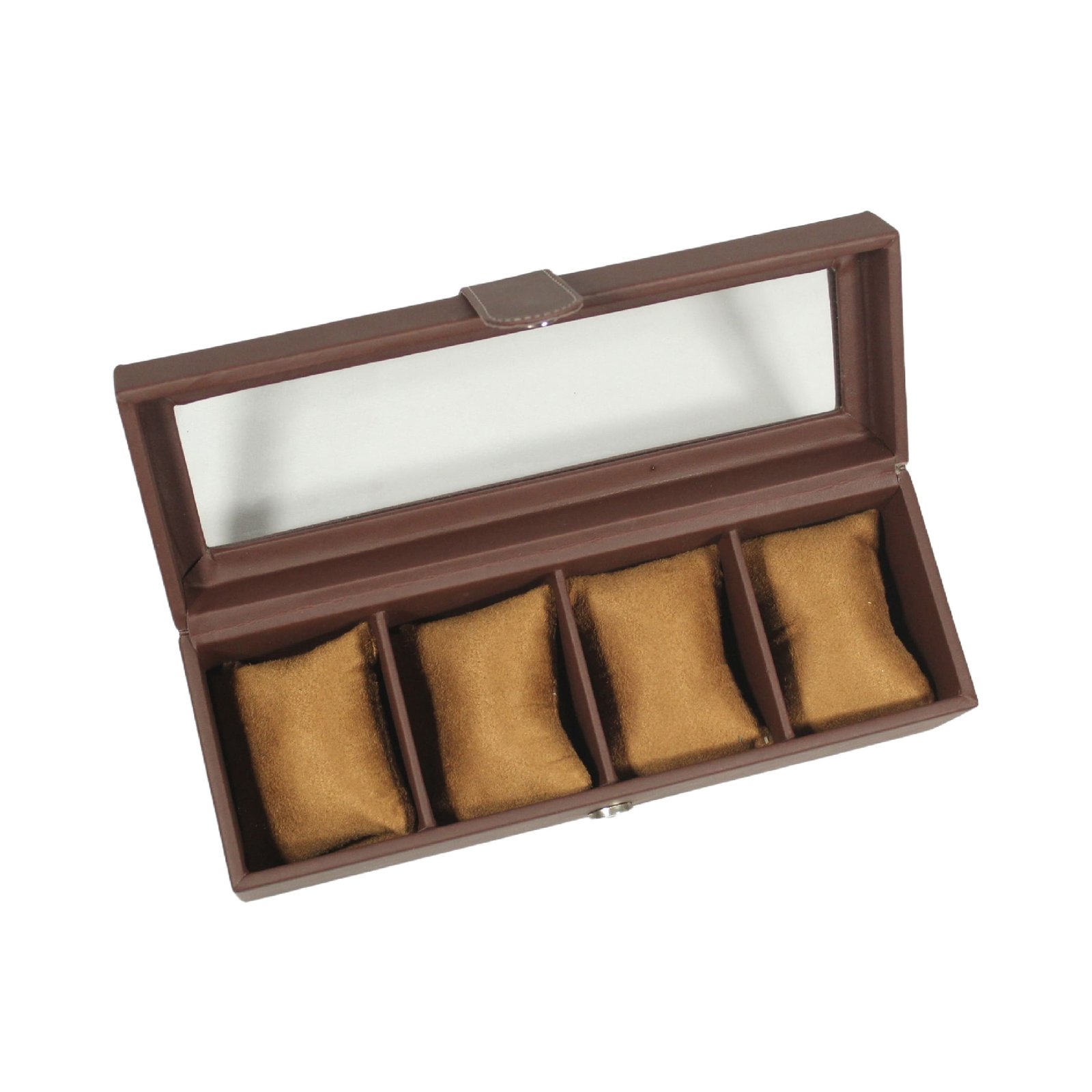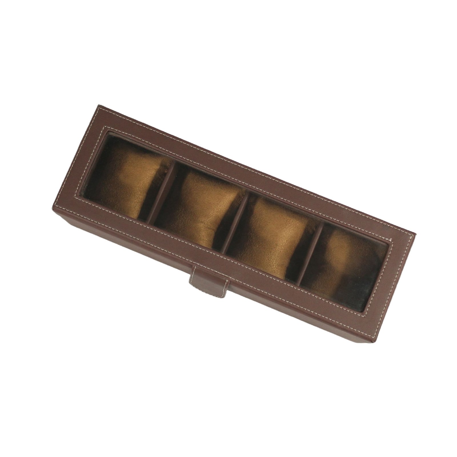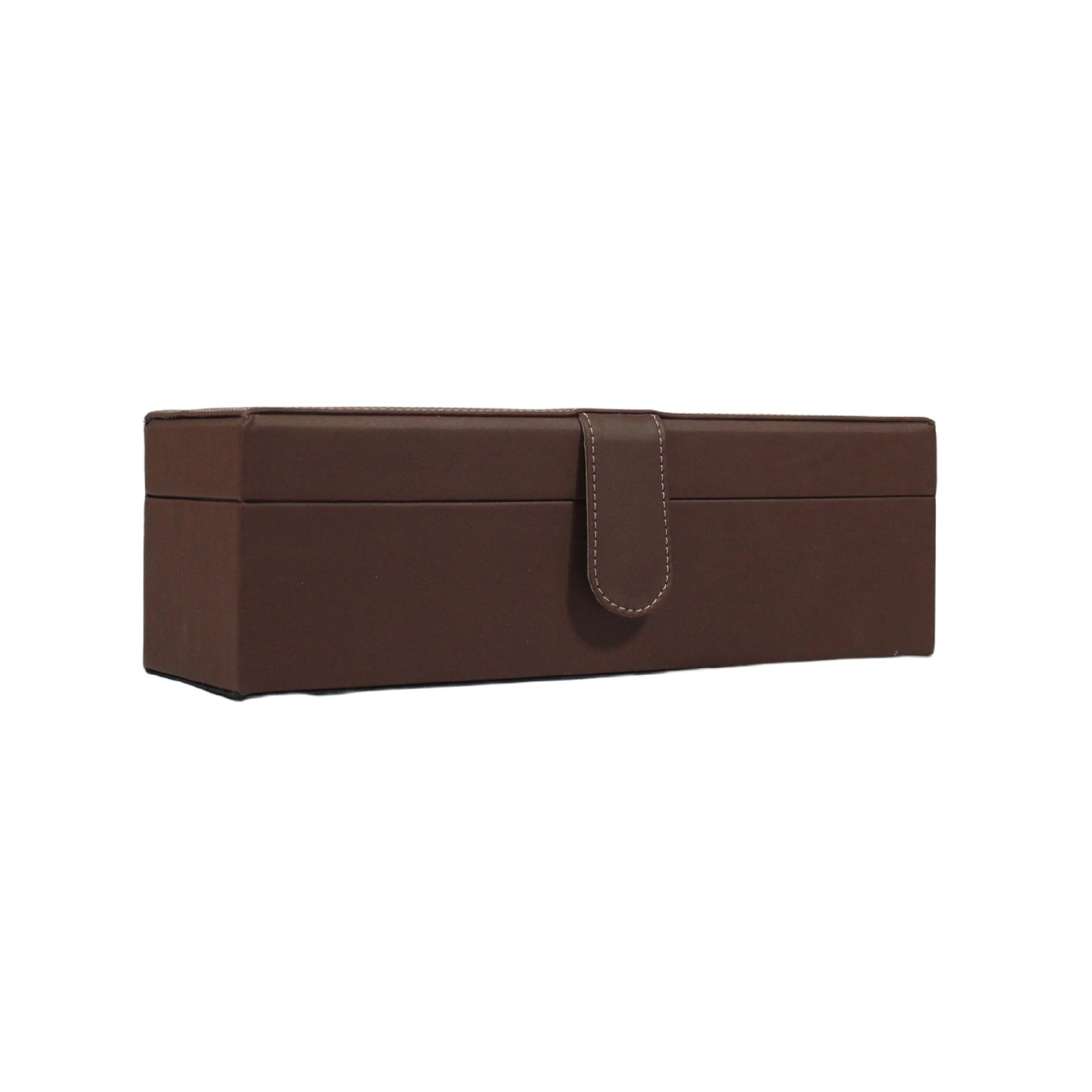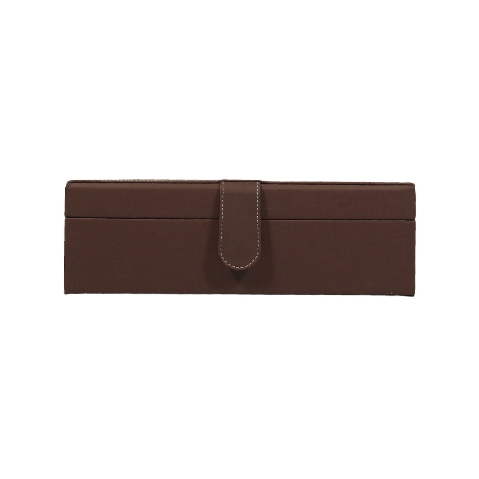 Es un alhajero multifuncional ideal para regalo fabricado en piel o símil piel con 6 divisiones para anillos, aretes, mancuernas y cadenas más 3 divisiones para relojes. Se fábrica con tapa con vidrio para exhibirse mejor.