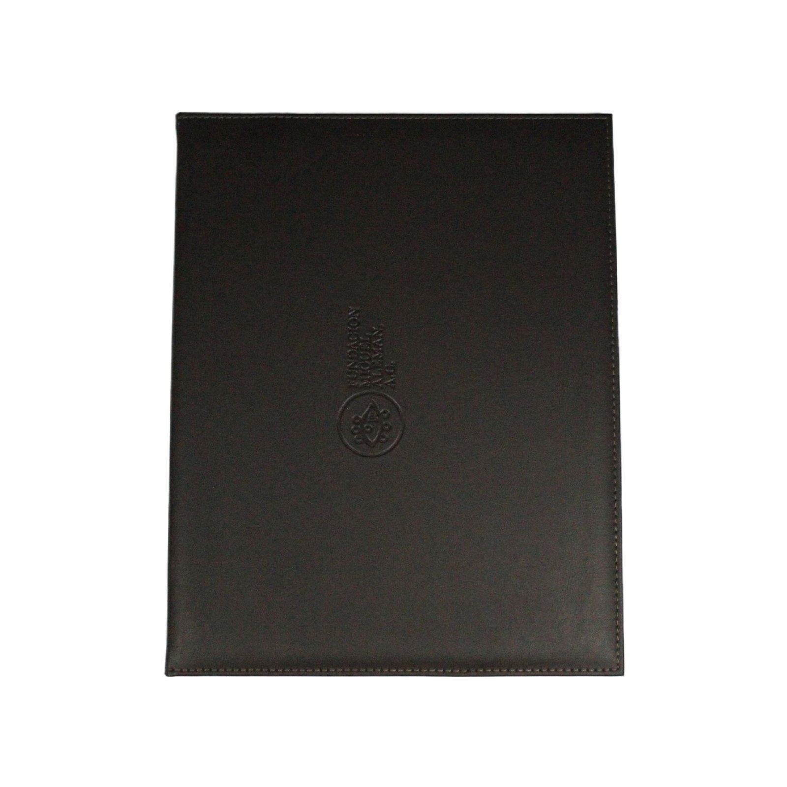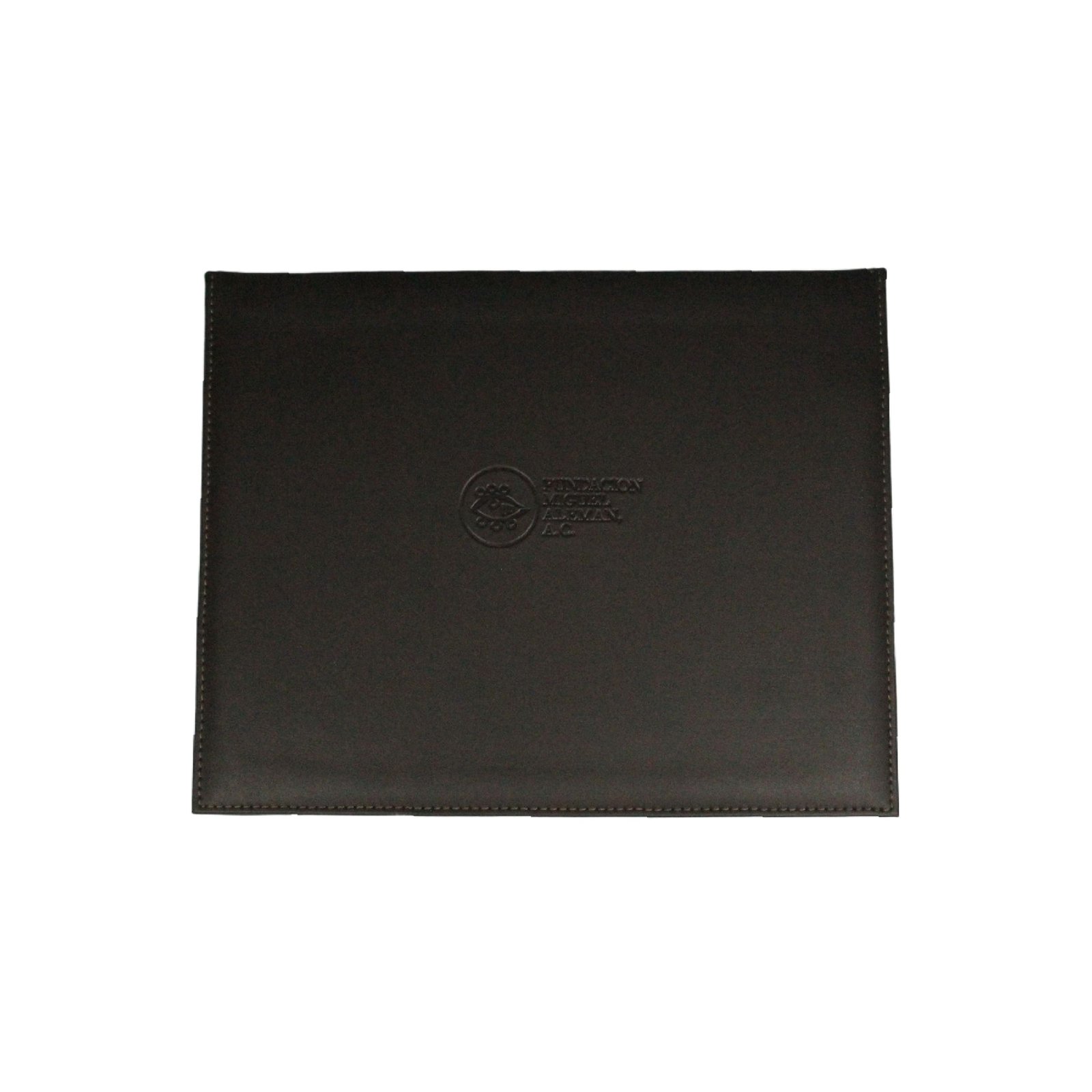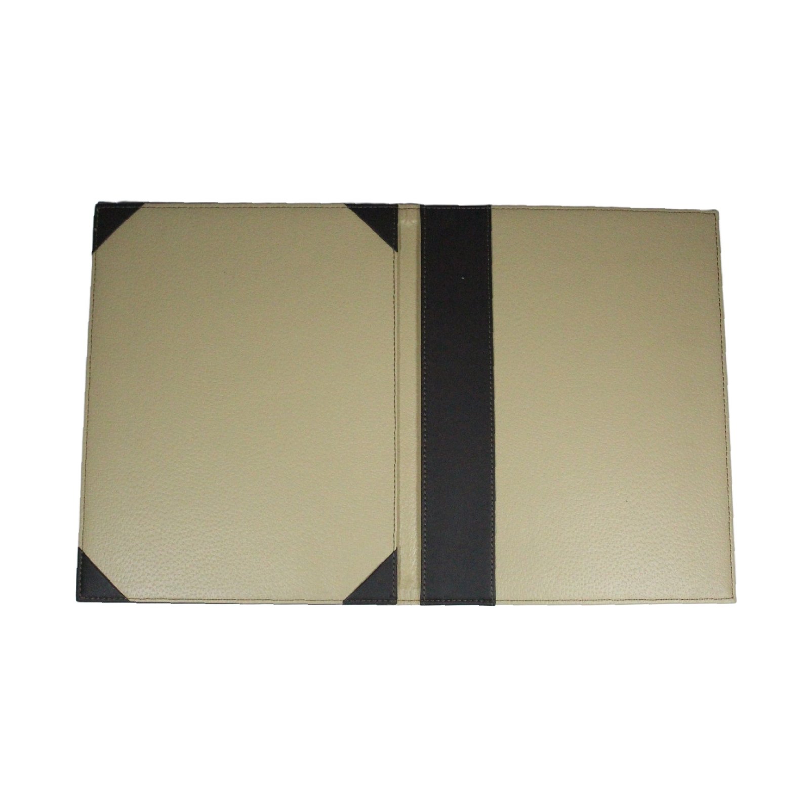 Carpeta de piel con elegante diseño en dos tonos y acabados profesionales. Ideal para documentos y presentaciones.