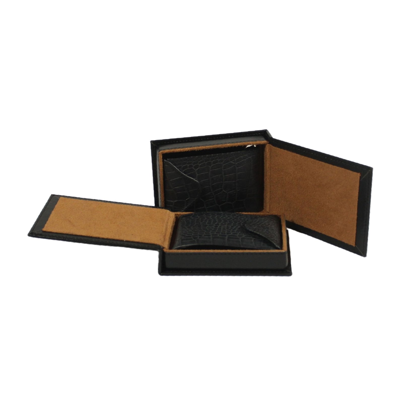 Fabricada en piel de ternera grabada con división para tarjetas y un clip para sujetar billetes. Medidas 10 Cms de largo x 7 cms de alto. Ideal para guardarse tanto en la bolsa de mujer como en el pantalón de caballero. Incluye caja doble propósito como empaque de regalo y ambas con área de grabado para personalizar. Disponible en múltiples colores.