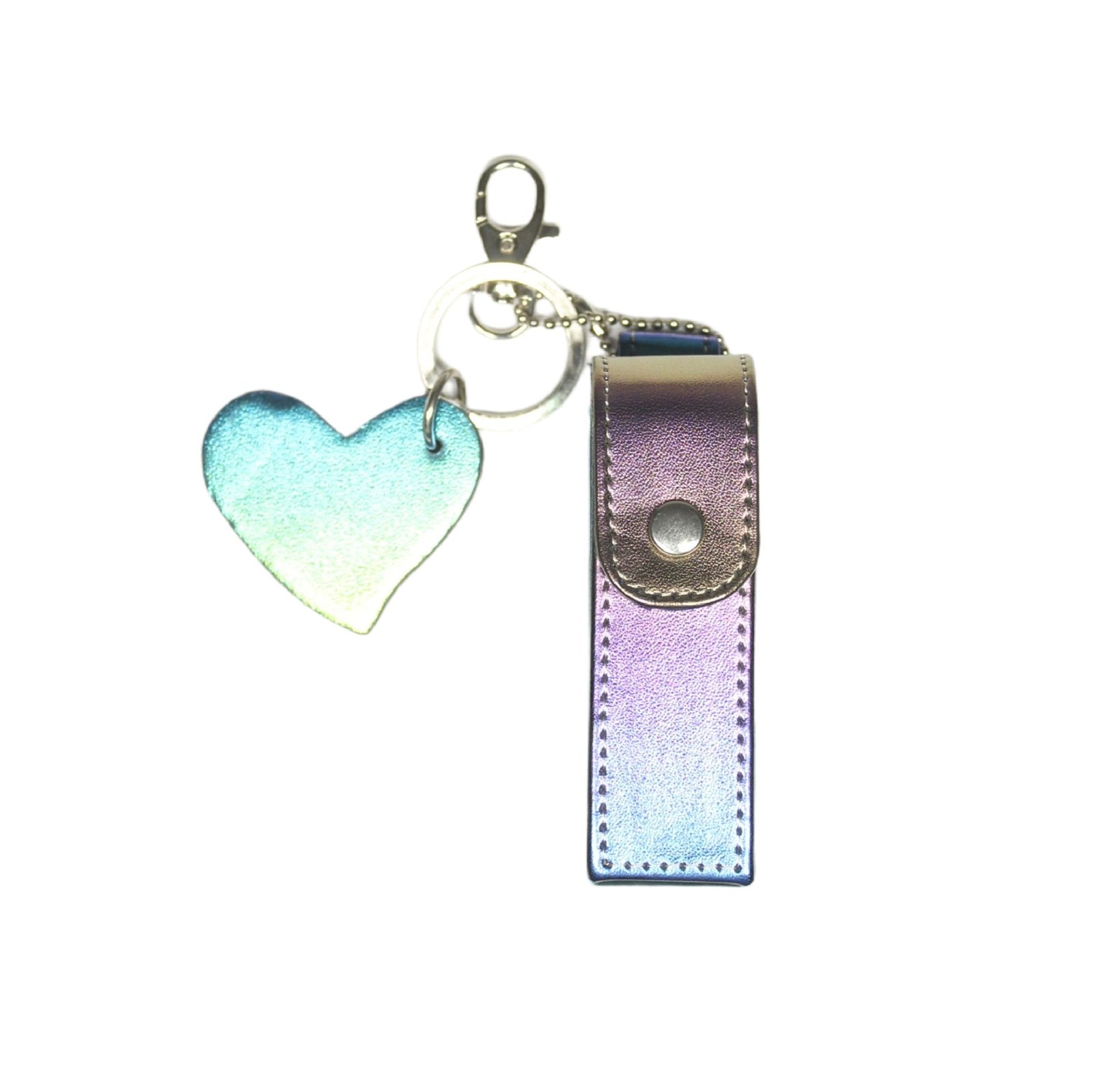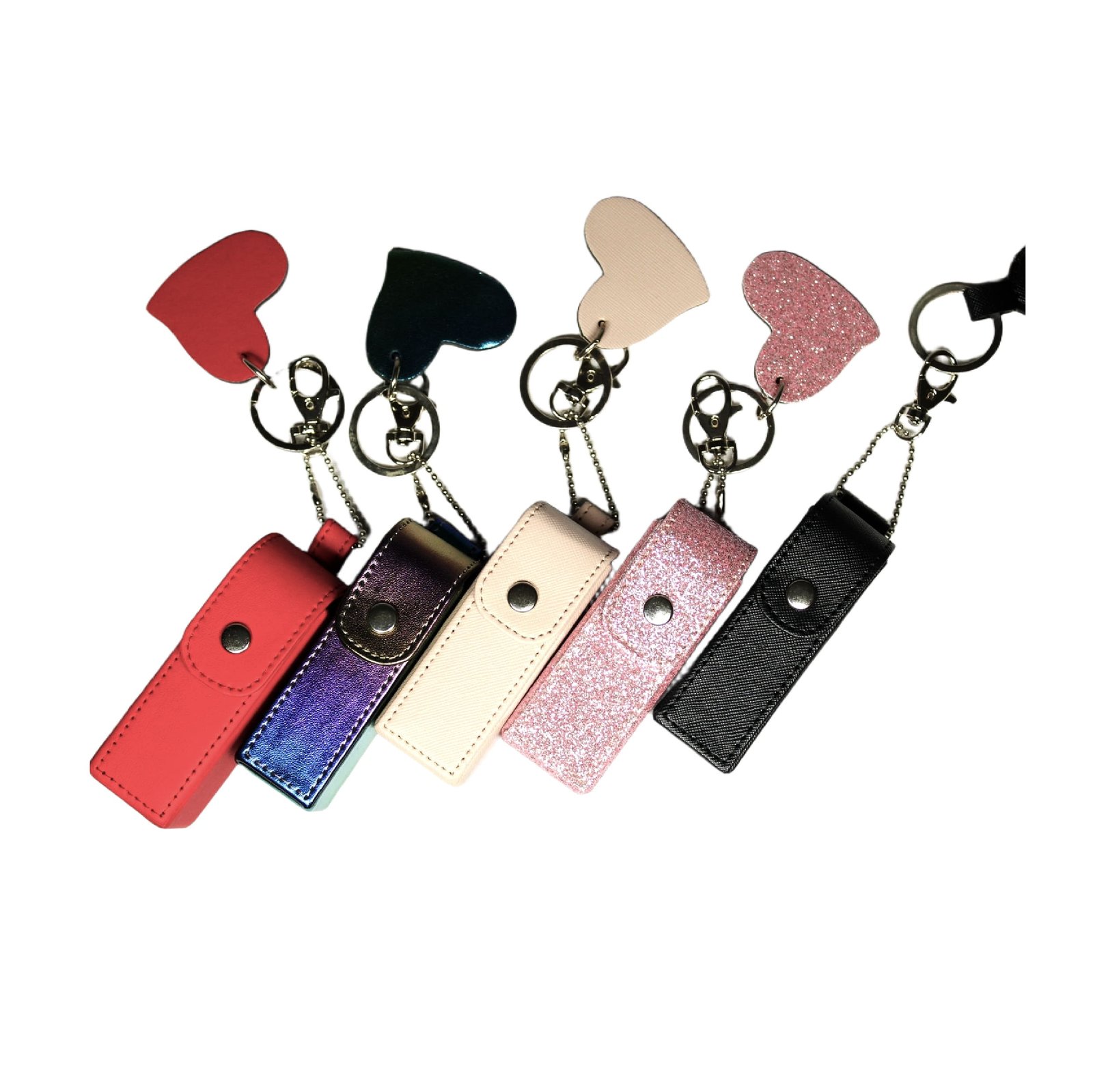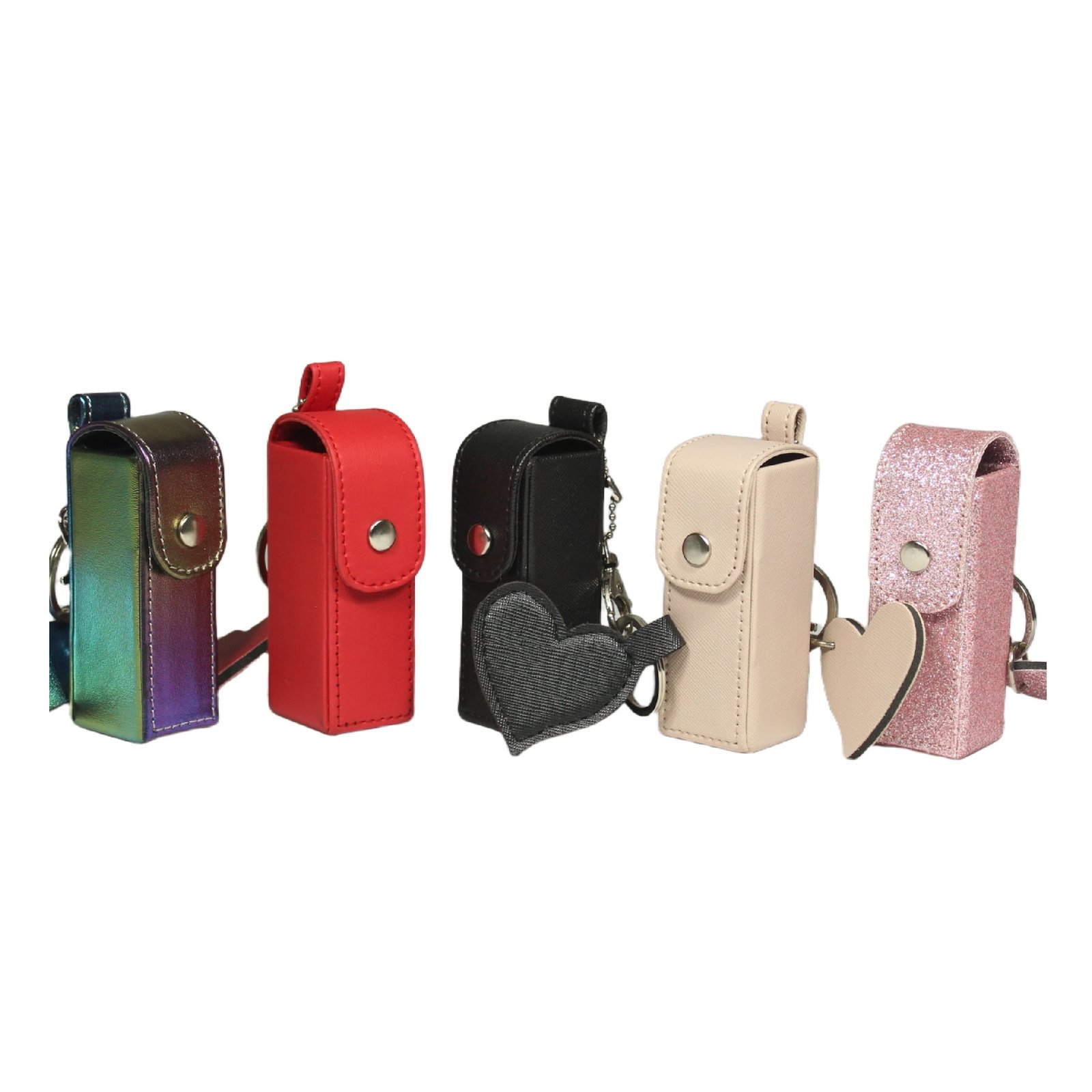 Estuche con broche y cadena de llavero. Un regalo ideal para personalizar con tu logotipo tanto en el labial como en el llavero de corazón. Práctico, pequeño y muy útil. Disponible en todos los colores y diferentes texturas de símil piel.